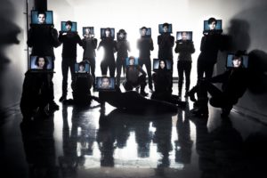 Cette banalité des technologies permet également d’approfondir sur scène l’émergence d’un sentiment de présence. Ces phénomènes se retrouvent dans le dispositif employé dans « iShow », performance du collectif canadien Les Petites Cellules Chaudes, présentée pour la première fois en mai 2012. Elle naît des rencontres organisées par les Laboratoires du Théâtre Français du CNA en 2011, à Ottawa, réunissant des inconnus, pour la plupart metteurs en scène et acteurs, pour une période de dix jours autour de la question des réseaux sociaux. Le « iShow », reposant principalement sur l’utilisation de ces derniers (navigation en ligne, reprise de vidéos YouTube, chat en direct), ne suit pas une narration linéaire de type fictif et fonctionne davantage par tableaux qui reflètent la dynamique de recherche et de divagation propre au web. La structure de la performance reste axée sur les effets produits par les technologies dans notre quotidien comme sujet et matériau même de la (re)présentation. Elles sont aussi essentiellement le lieu de rencontres improbables.