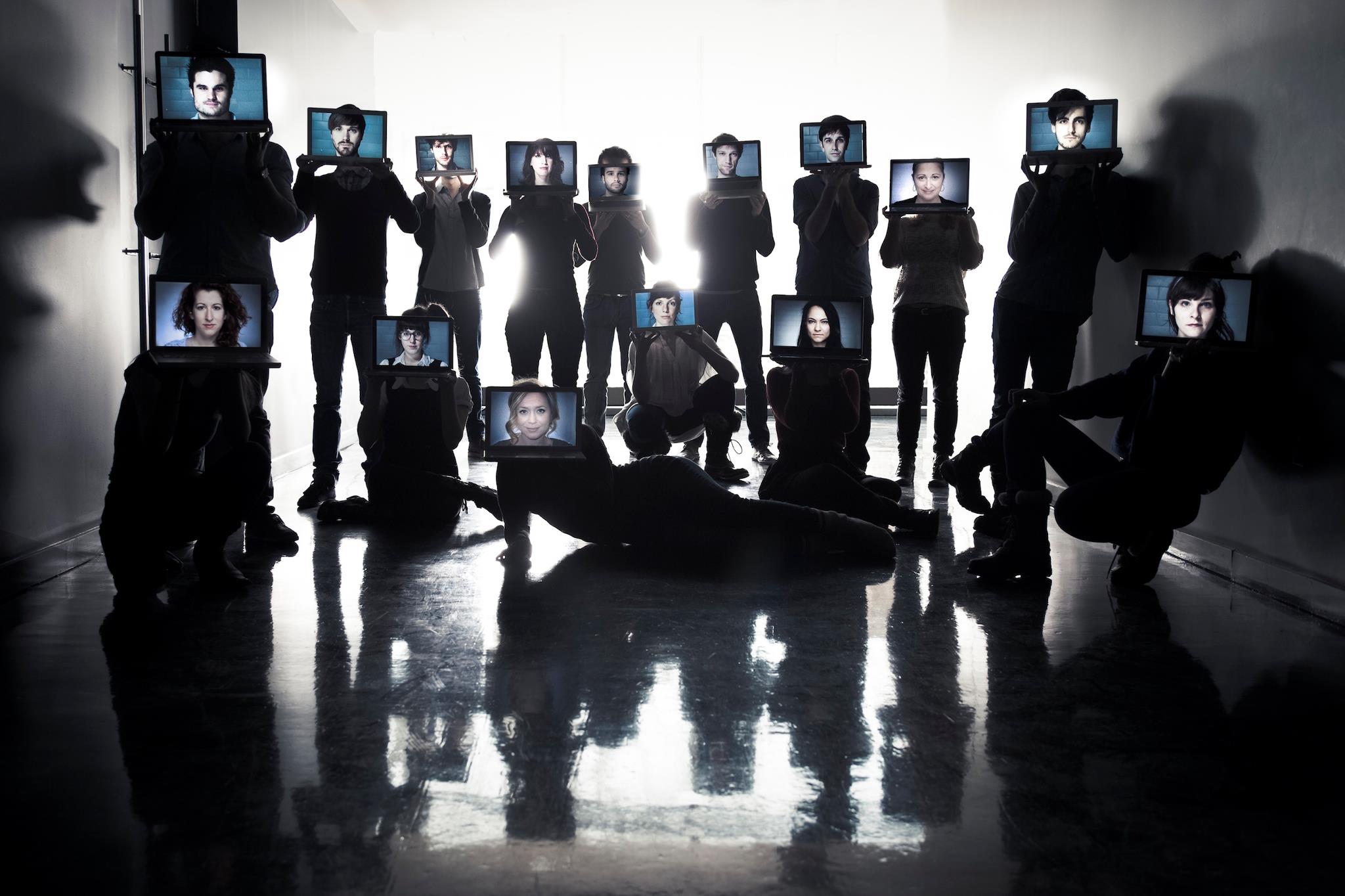 L’authenticité, tout d’abord, émerge dans le cadre d’un dispositif alliant banalité et technologies populaires. Dans le « iShow », les quinze performeurs utilisent majoritairement Chatroulette, site de chat qui met en relation, au hasard, des individus du monde entier via la webcam de leur ordinateur. La scénographie minimale (tables, chaises, ordinateurs, écrans de projection) laisse totalement place à l’inconnu, à l’étendue des possibles qui s’offrent sur les réseaux sociaux et plateformes qui créent à eux seuls des paysages, des atmosphères, des rencontres. Les performeurs interagissent avec des personnes non présentes physiquement, dans un hors champ si vaste qu’il en devient presque inimaginable. Une majorité des conversations ou vidéos live sont projetées sur les écrans en fond de scène. Enfin, la performance est rythmée par les régulières interventions à travers Skype d’une actrice ayant prétendument été retenue à Montréal.